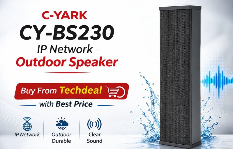 The C-YARK CY-BS230 IP Network Outdoor Speaker is a professional IP-based audio broadcasting speaker designed for clear announcements, background music, and emergency notifications in outdoor environments. Built with a durable aluminum alloy enclosure, this speaker is ideal for long-term installation in campuses, factories, parks, public venues, and industrial facilities in Bangladesh.