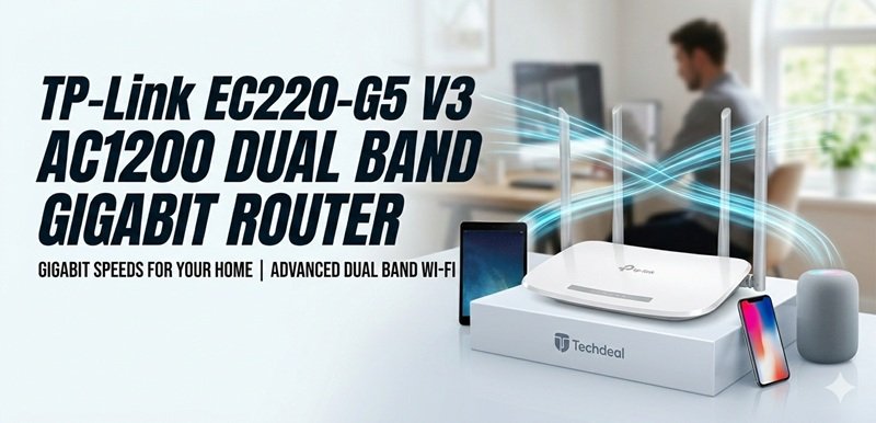 Techdeal offers you the TP-Link EC220-G5 V3 AC1200 Dual Band Gigabit Router at a low price in Bangladesh 02/28/2026. The latest price of TP-Link EC220-G5 V3 AC1200 Dual Band Gigabit Router is 2,250৳